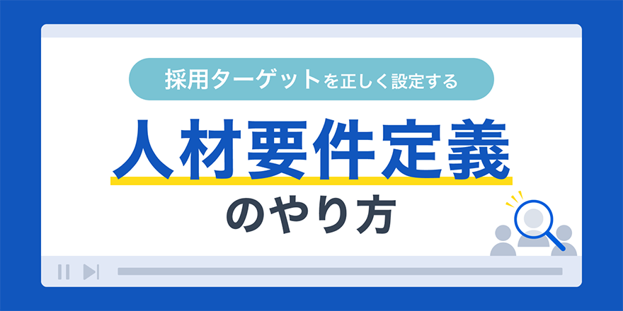 人材要件定義のやり方人材要件定義は採用計画の第一歩。自社が求める人材と人材市場の動向を見極め適切な採用ターゲットの設定が重要です。人材要件定義でおさえるべきポイントを動画にまとめました。