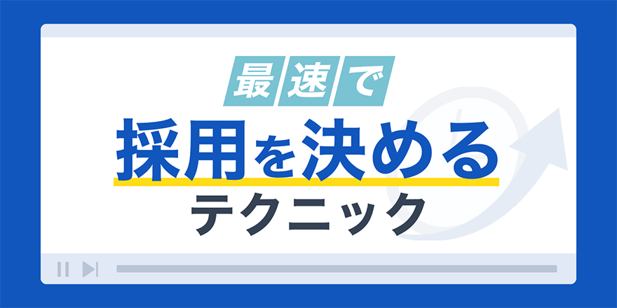最速で採用を決めるテクニック昨今、様々な採用手法が発展している中、採用スピードの速さは採用力に強く関係します。1つ1つのプロセスを工夫することで採用は劇的に変わります。最速で採用するためのテクニックを動画にまとめました。