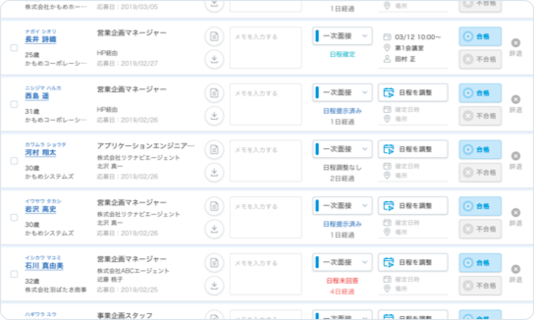 全候補者の最新選考状況を一元管理できます。