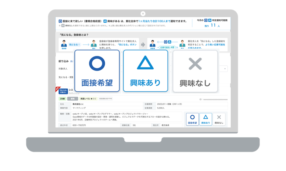 最新技術を応用したレコメンドや、貴社に興味がある登録者抽出など、独自の仕組みを搭載しています。
