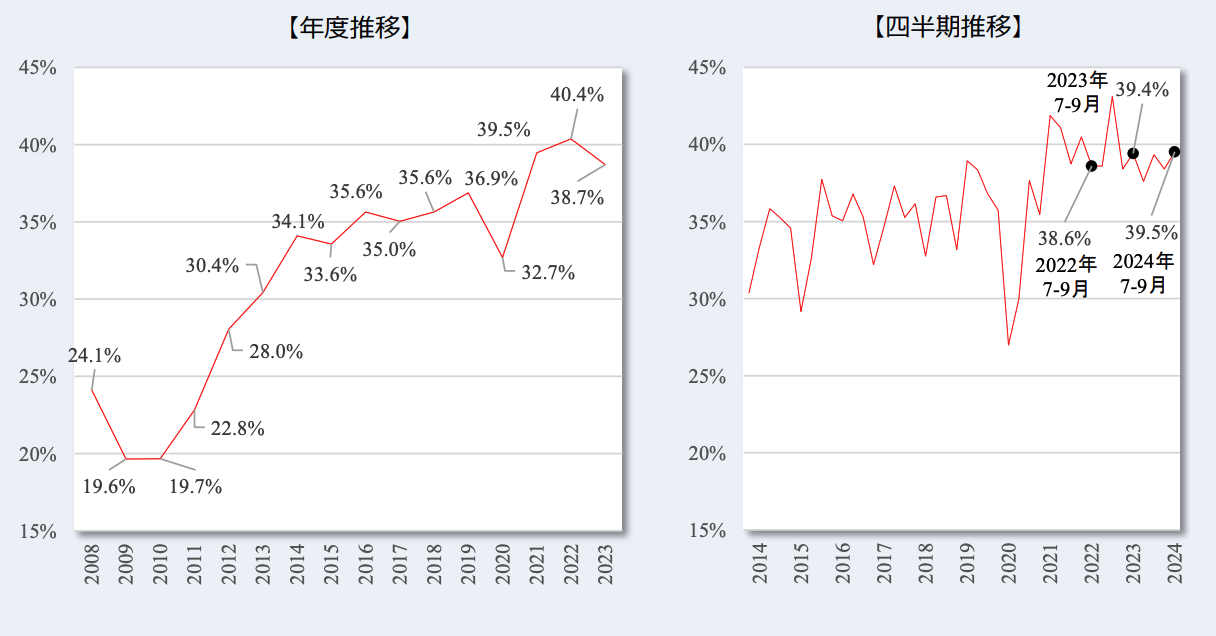 足元 2024 年 7-9 月期は過去最高値となっている。