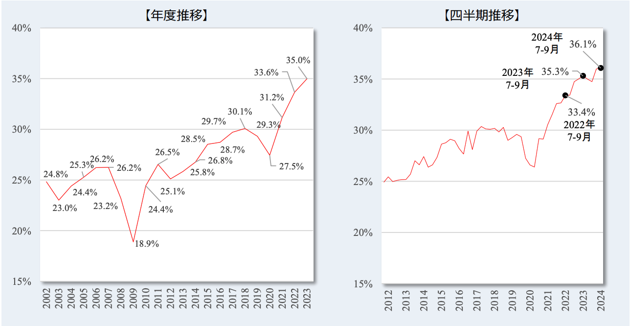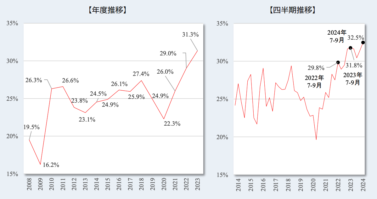 し、足元 2024 年 7-9 月期は過去最高値※2 となっている。