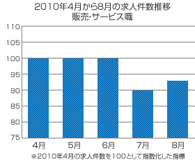 転職のリクルートエージェント > 転職成功ガイド > 転職マーケットトピックス > 2010年度上半期の転職市場動向と下半期の動向予測 > 販売・サービス職(2010年9月:2010年度上半期の転職市場動向)