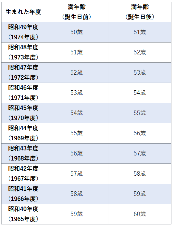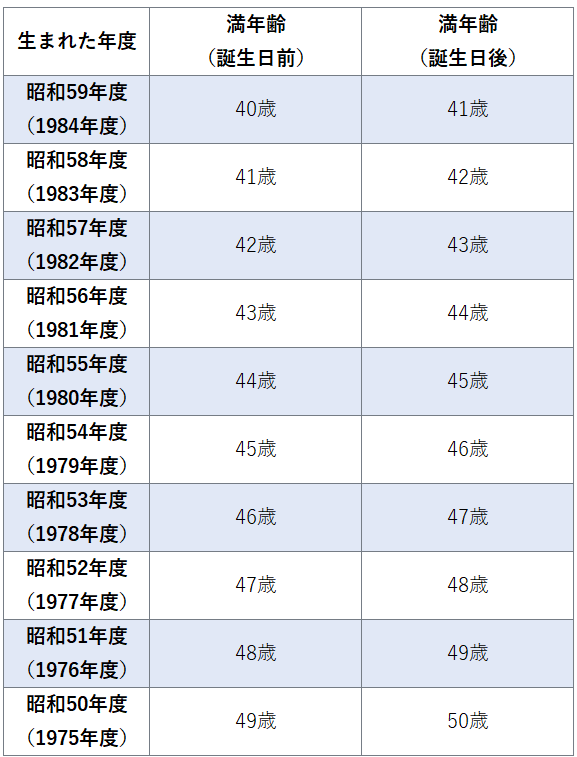 生まれ年(西暦・和暦)と満年齢(誕生日前・誕生日後)の早見表を使用すれば、手軽に現在の満年齢を確認できます。以下表を参照し、履歴書作成に役立ててください。