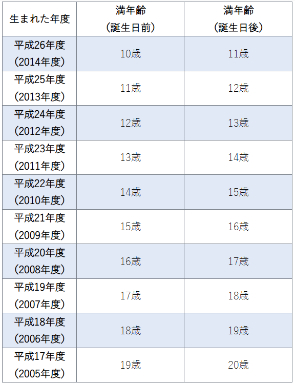 平成17年~平成26年(2005年~2014年)生まれ