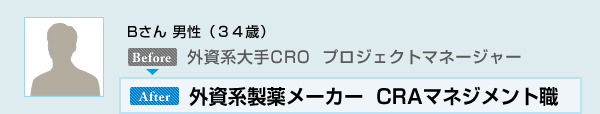 Bさんのお話を伺い、CROの中でさらに上位ポジションの求人と、外資系製薬メーカーの臨床開発職という2つの求人をご紹介しました。それぞれの選考を進めていく中で、BさんはCRO内でのステップアップよりも「受注側から発注側へ行きたい」との思いが強くなり、製薬メーカーの臨床開発職を第一志望として転職活動を行うことになりました。